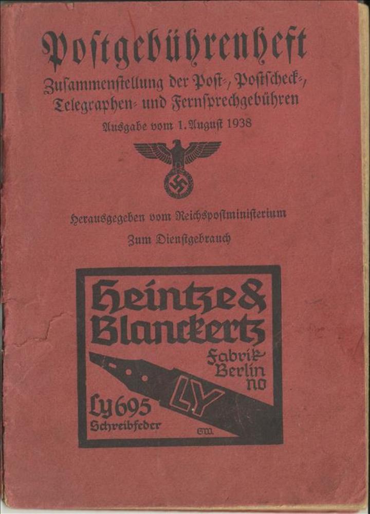 Postgebührenheft, Ausgabe augustus 1938
