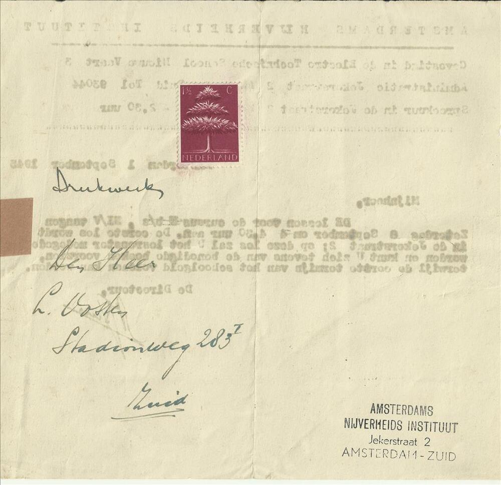 Amsterdams Nijverheids Instituut - bericht voor dhr ...
