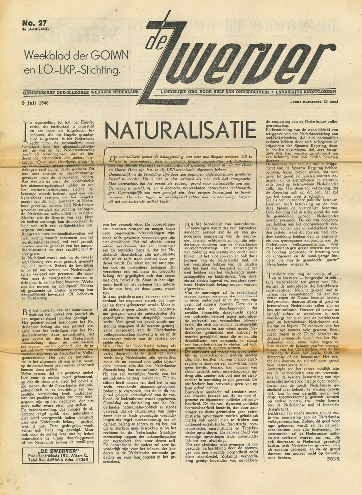 Vrij Nederland, gedrukt te Londen, 20 oktober 1945