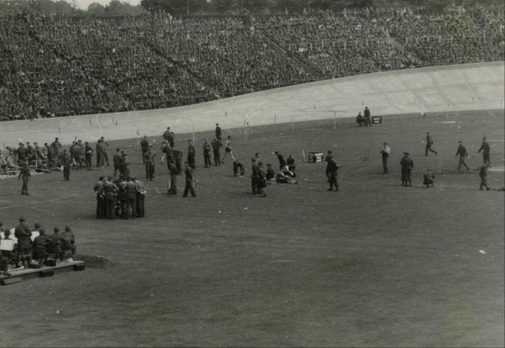 sportdag Canadese militairen in Goffert stadion, 1945