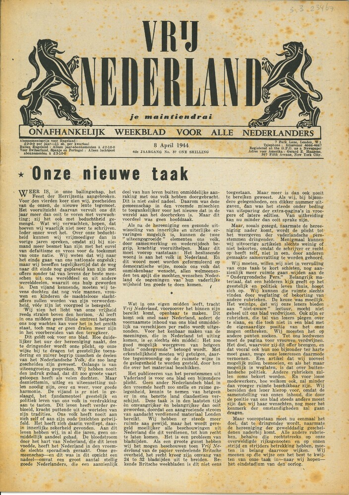Vrij Nederland, gedrukt te Londen, 4de jaarg. No 37,...