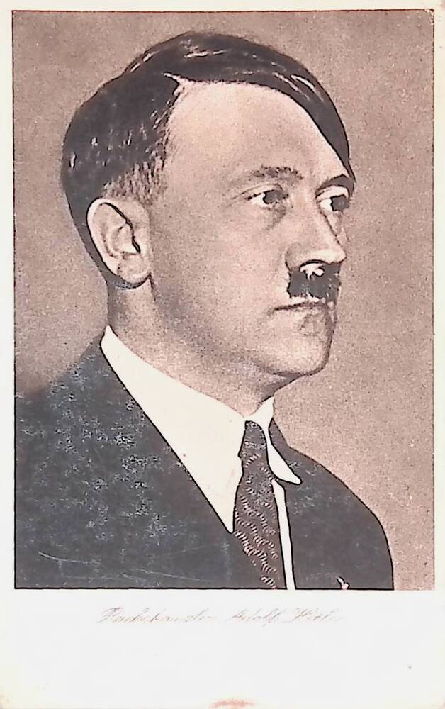 Ansichtkaart met de afbeelding van Adolf Hitler.