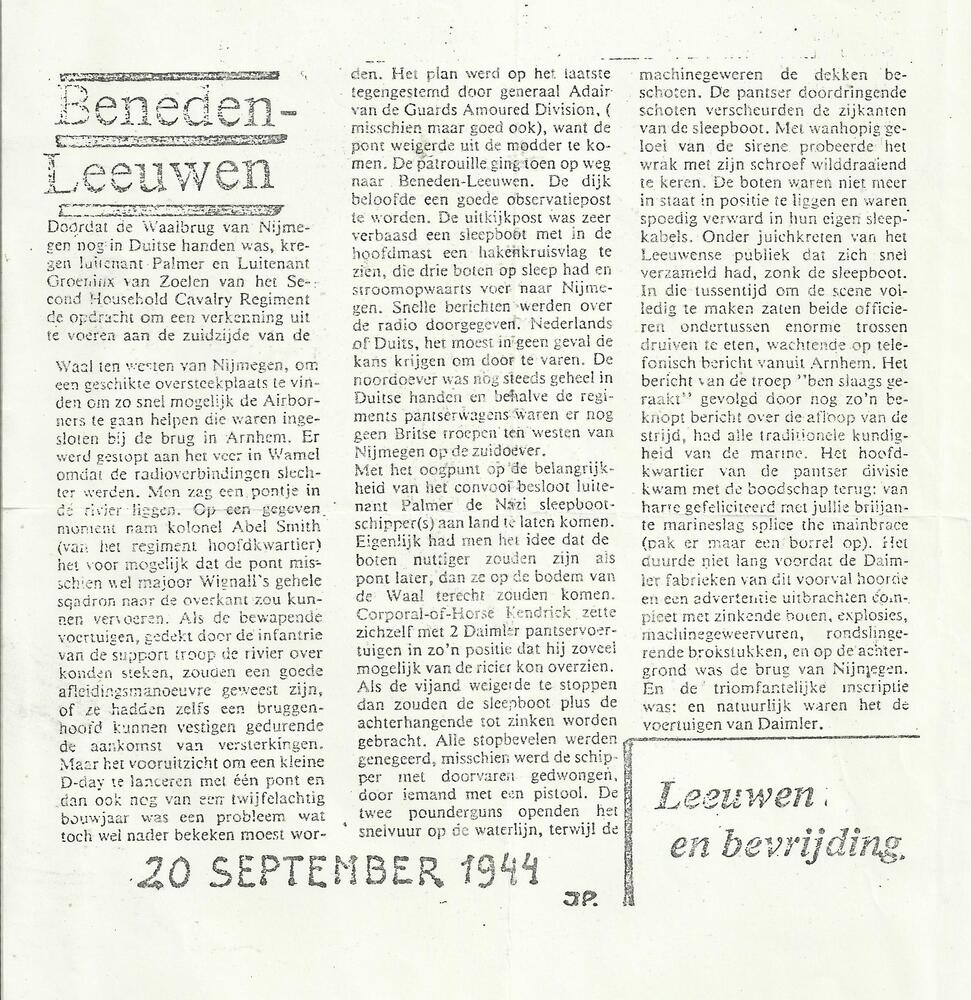 Verhaal gebeurtenissen Beneden-Leeuwen, 20 september...
