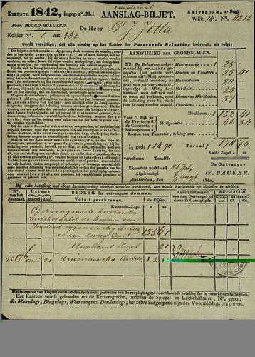 Aanslagbiljet, personele belasting, 1842