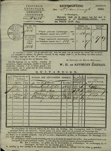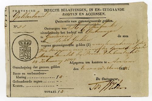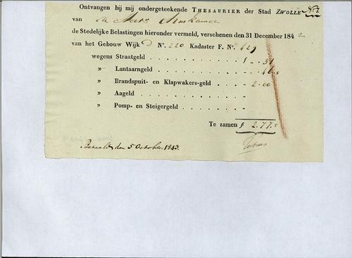 Kwitantie, gemeentelijke belastingen, 1843