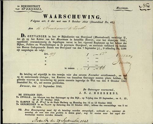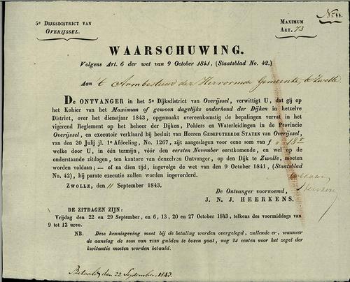 Waarschuwing, polderlasten, 1843