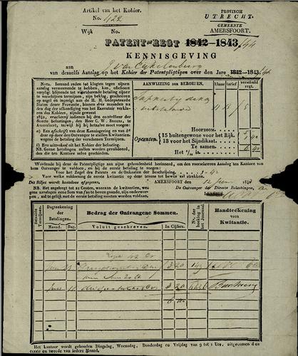Aanslagbiljet, patentbelasting, 1843