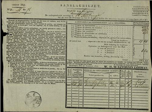 Aanslagbiljet, personele belasting, 1844