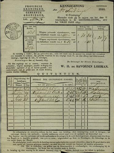 Kennisgeving, grondbelasting, 1844