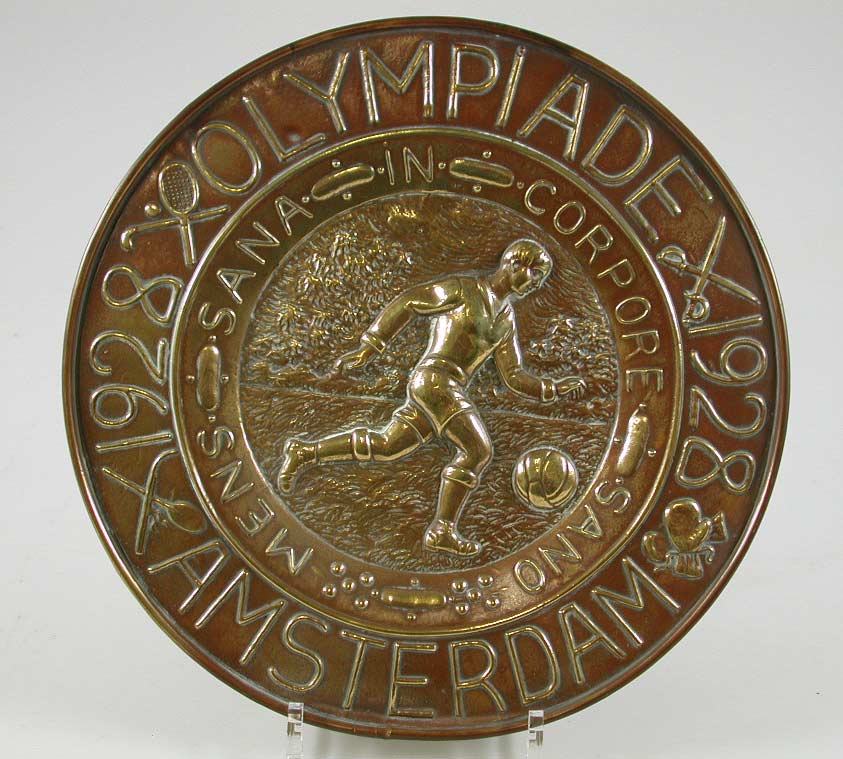 Herinneringsbord Olympische Spelen 1928, met voetballer