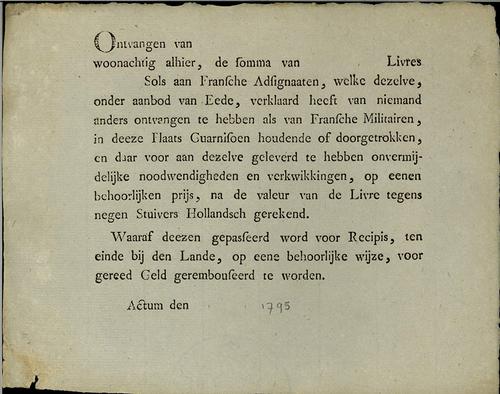 Formulier ontvangen Franse assignaten, 1795