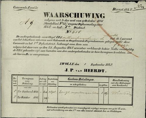 Kwitantie, grondbelasting, 1842