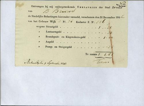 Kwitantie, gemeentelijk lasten, 1843