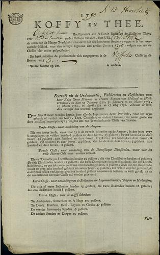 Belastingformulier, koffieaccijsn, theeaccijns, 1790