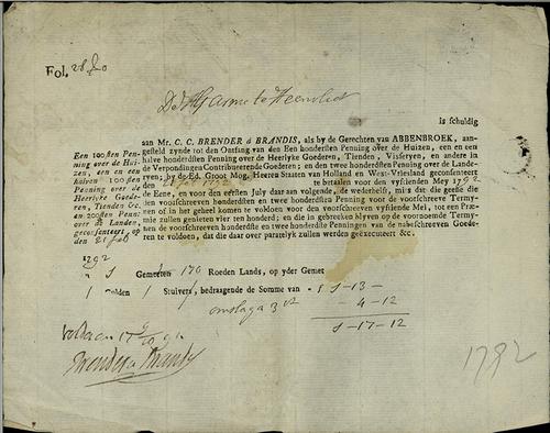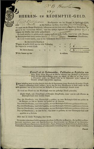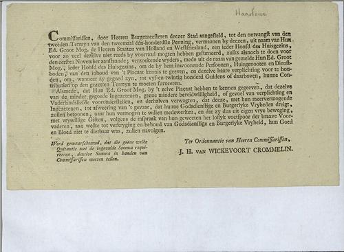 Aanslagbiljet, herengeld, redemptiegeld, 1790