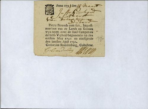 Aanslagbiljet, wijnaccijns, 1791