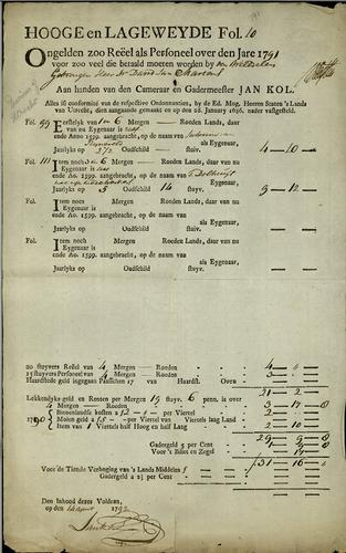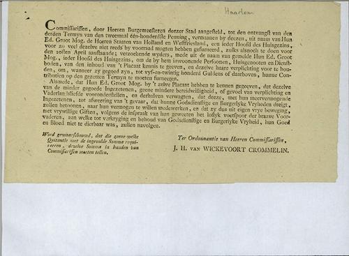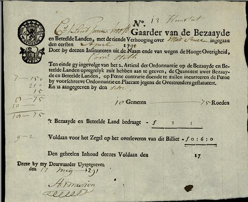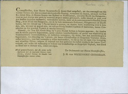 Belastingformulier, ongelden, 1793