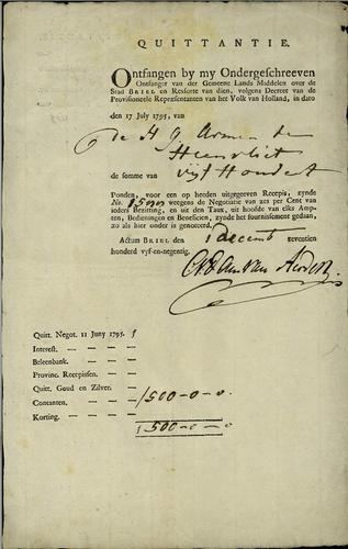 Quitantie, ambtgeld, 1795