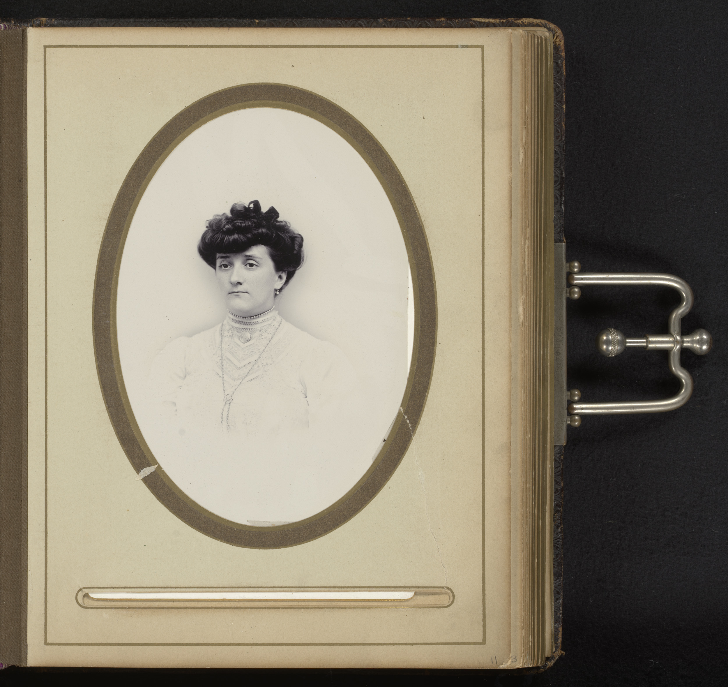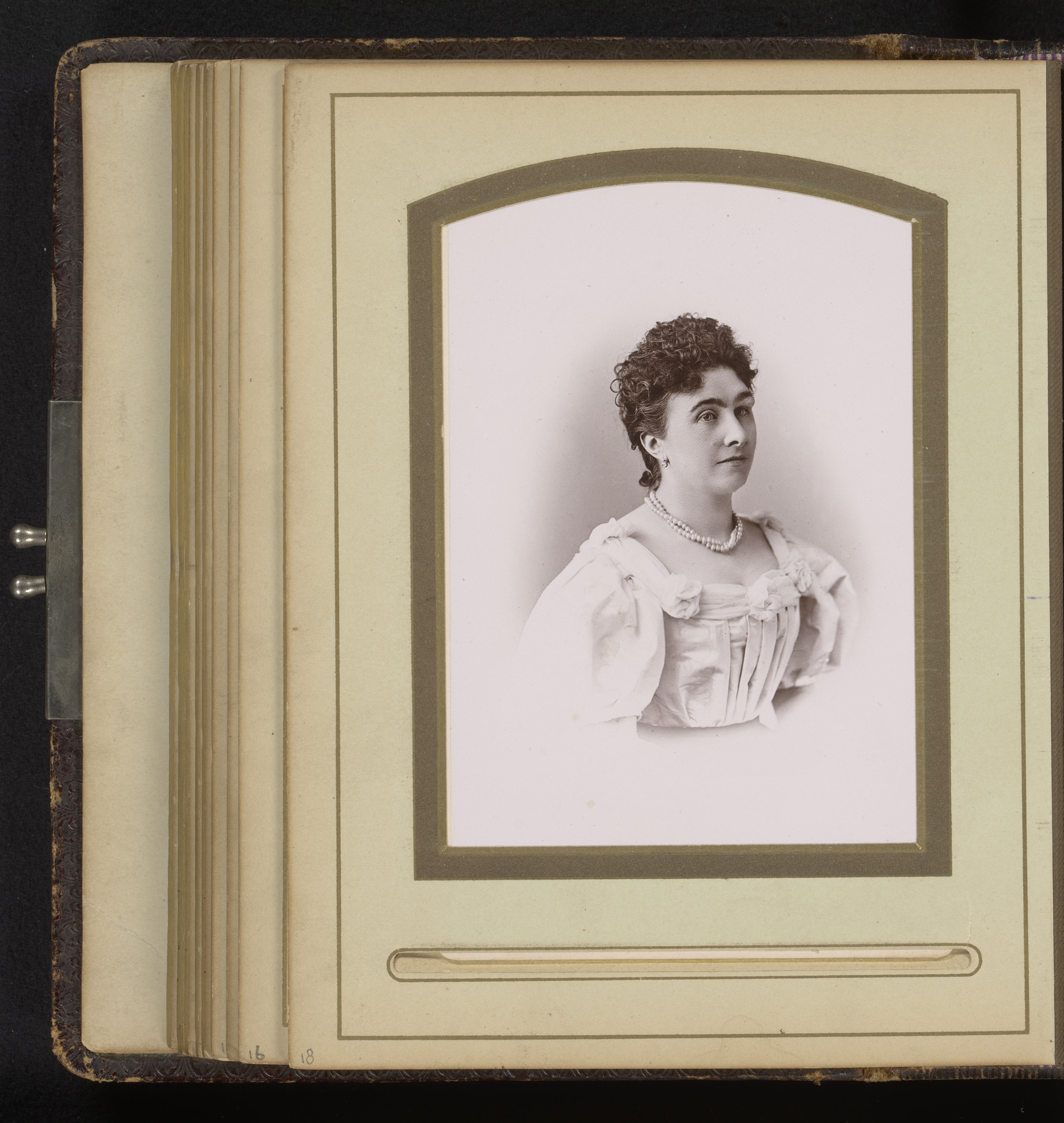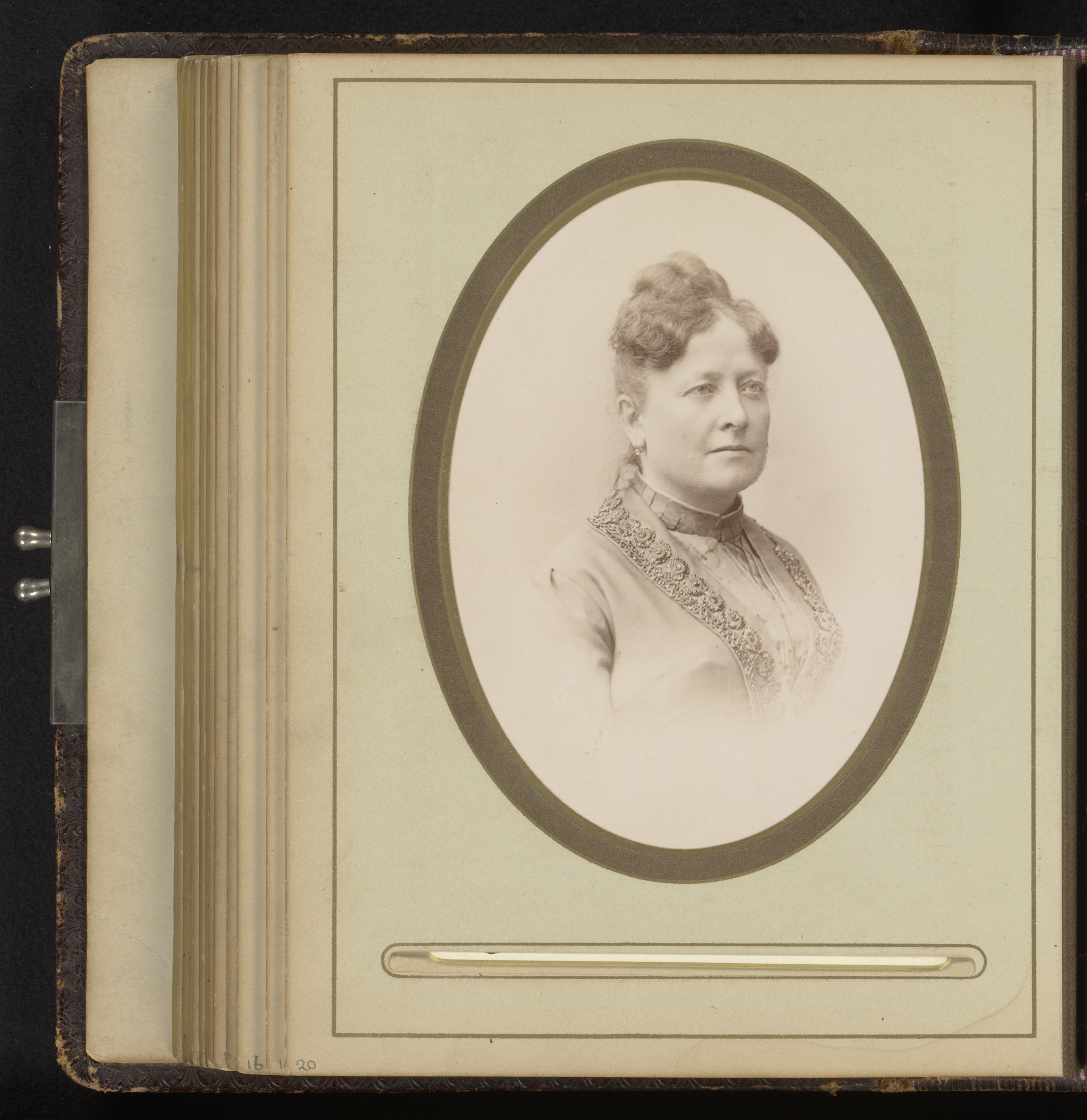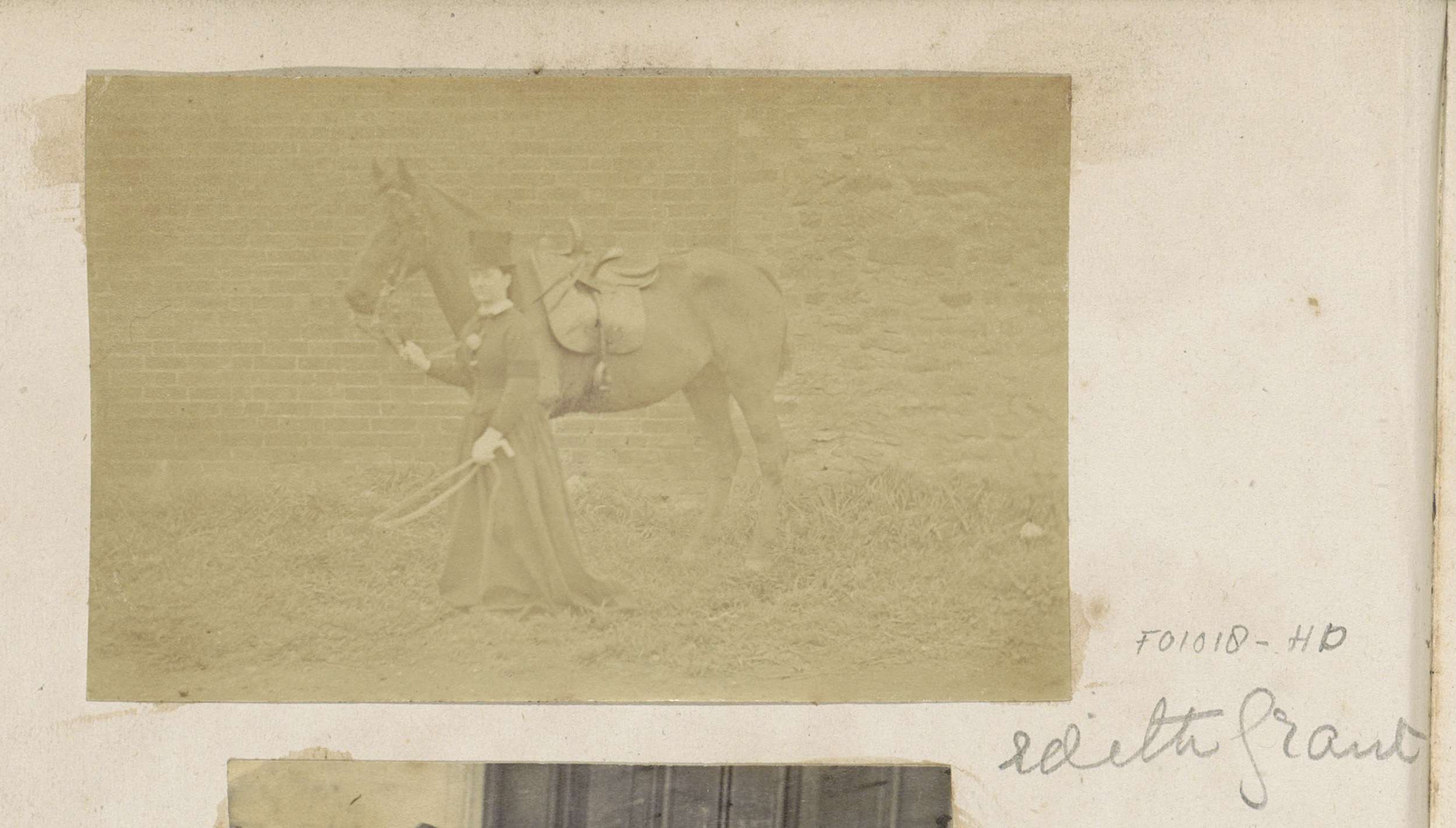 Vrouw aangeduid als Edith Grant met paard, vermoedel...