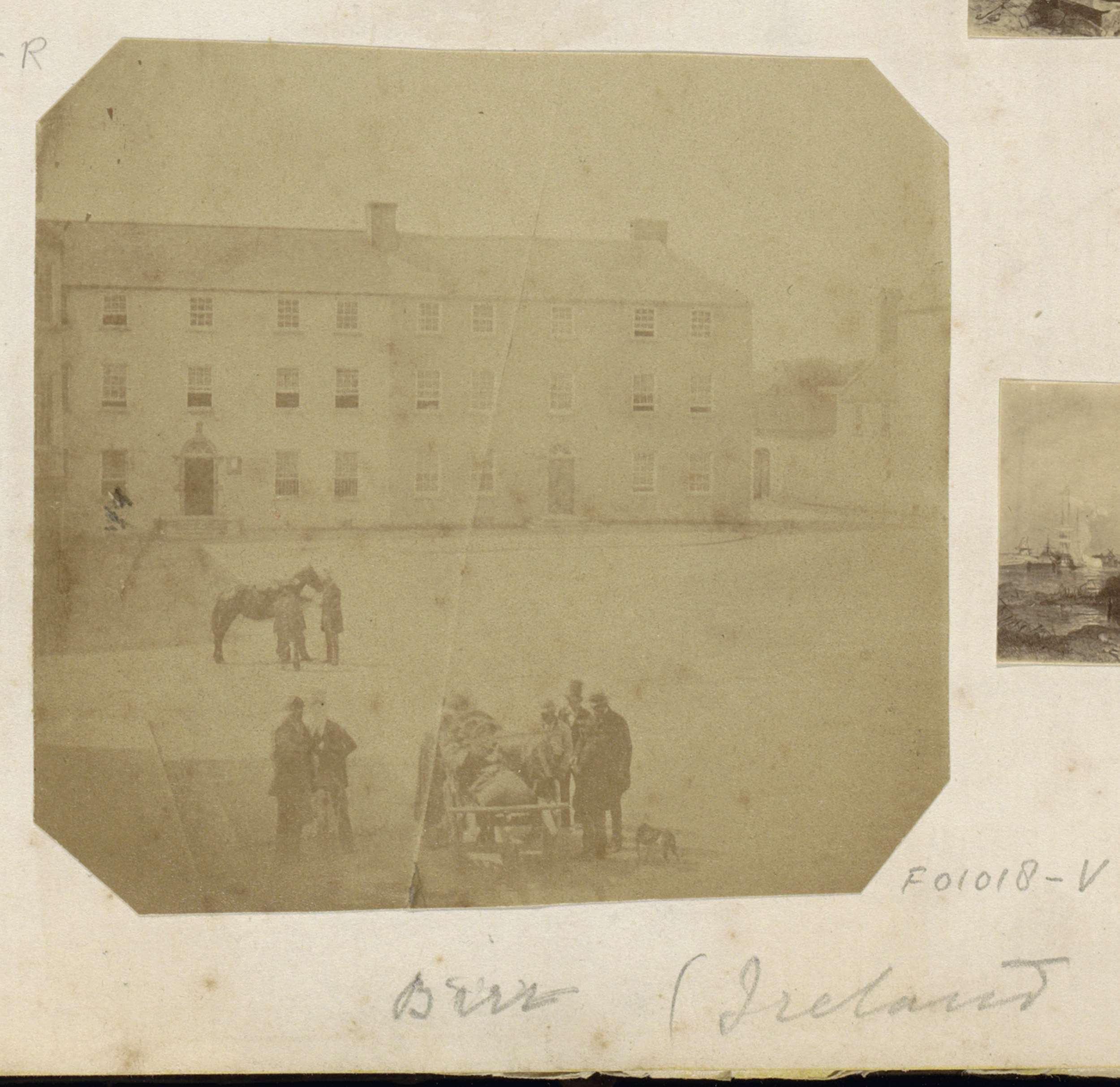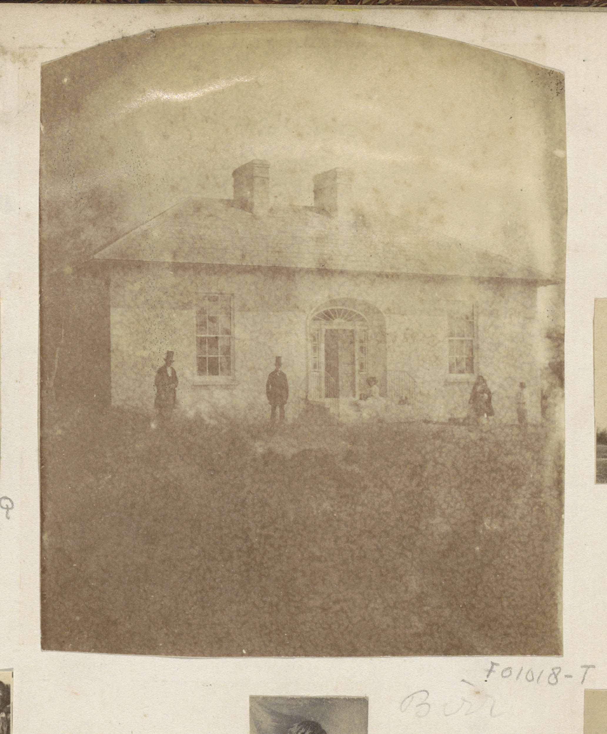 Mensen voor een landhuis, vermoedelijk in Groot-Brit...