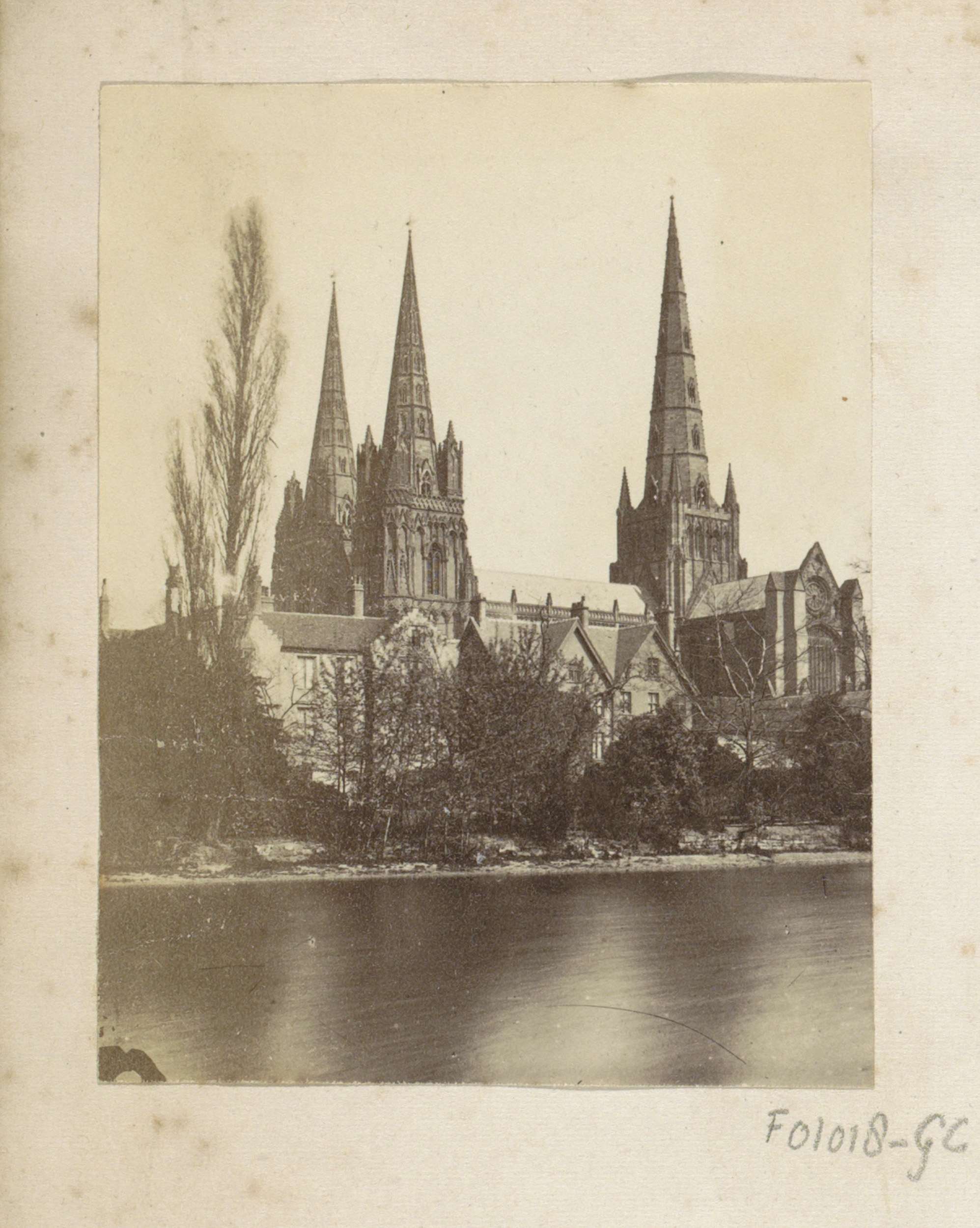 Kathedraal van Lichfield gezien over de rivier de Trent