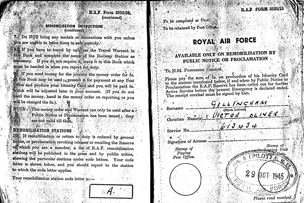 Documenten 613434 V.O. Gillingham, Air Gunner, Serge...