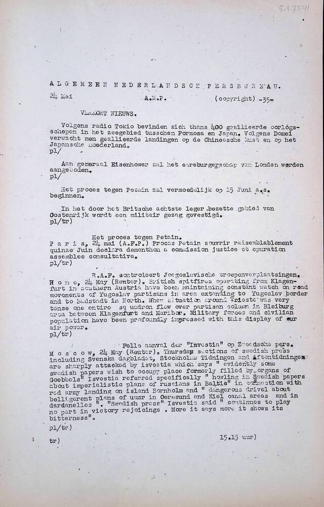 Algemeen Nederlandsch Persbureau, mededelingen, 24 m...