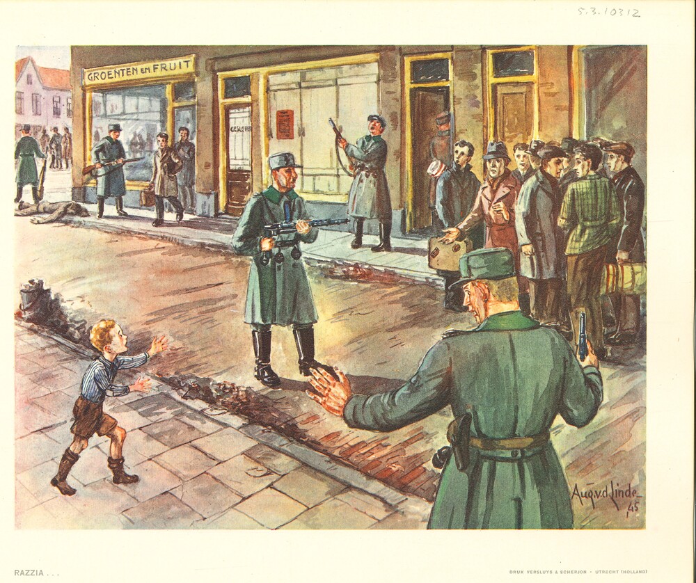 Vel: tekening "Razzia..." door Aug v.d. Linde