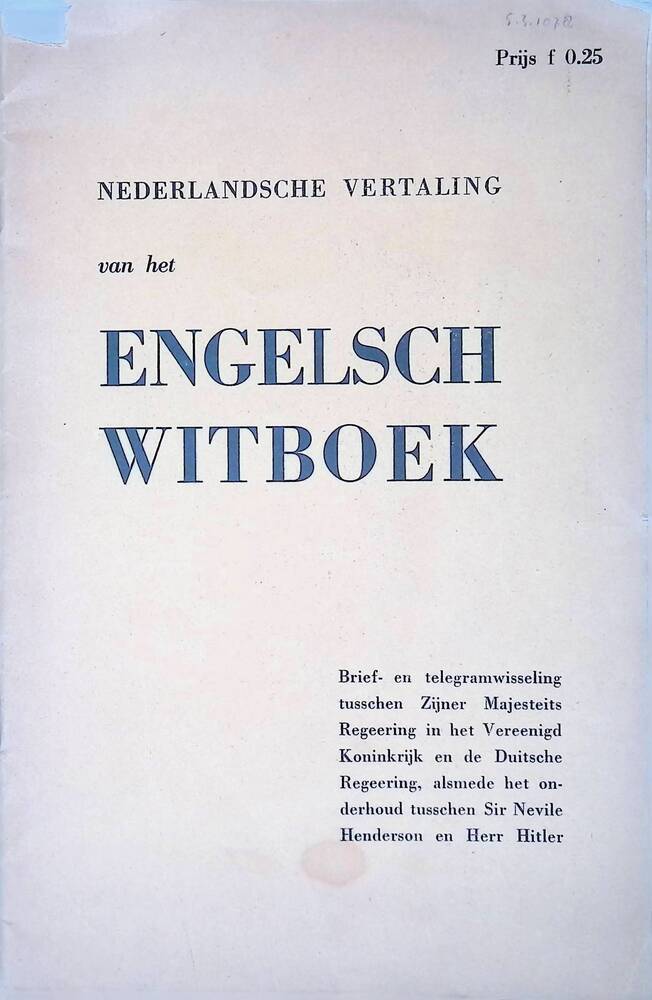 Brochure: Nederlandsche vertaling van het Engelsch W...