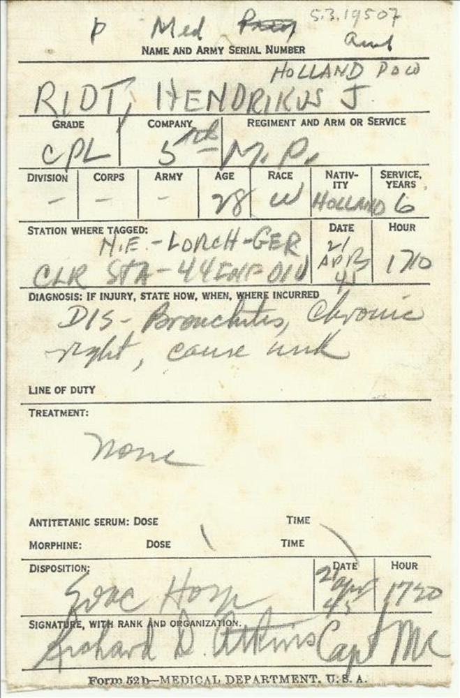 kaart Amerikaanse Medische Dienst met gegevens H.J.M...
