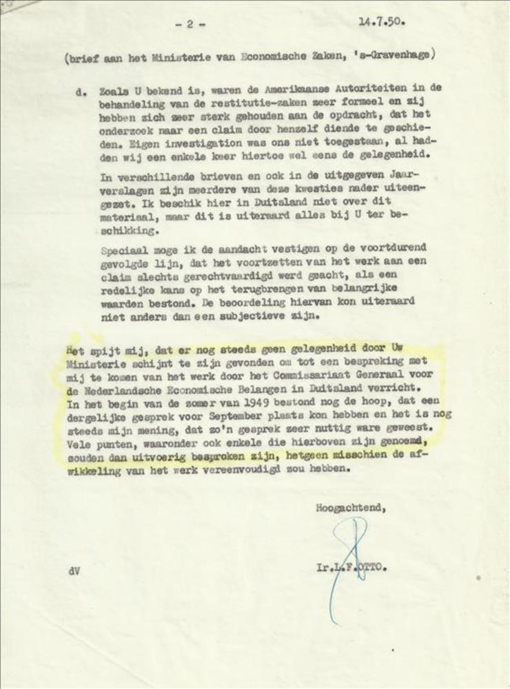 brief van Kol. Otto aan het Ministerie van Economisc...