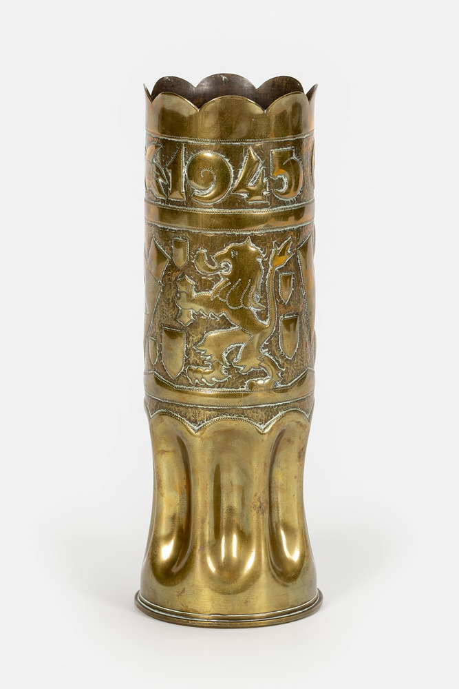 Koperen bloemenvaas gemaakt van een granaathuls, vol...