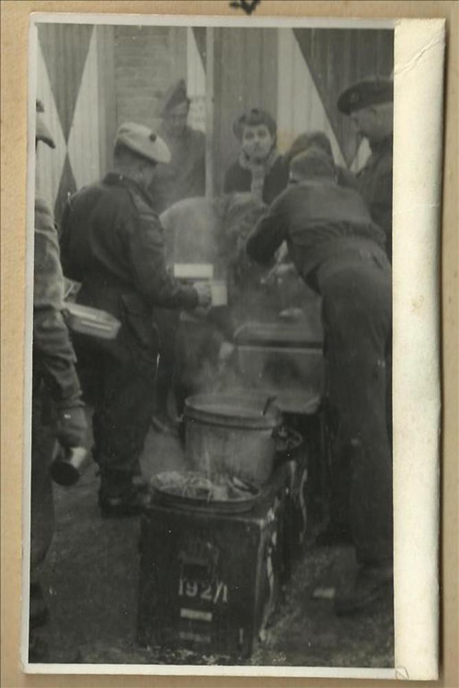 soldaten bij veldkeuken bij bevrijding Malden, septe...