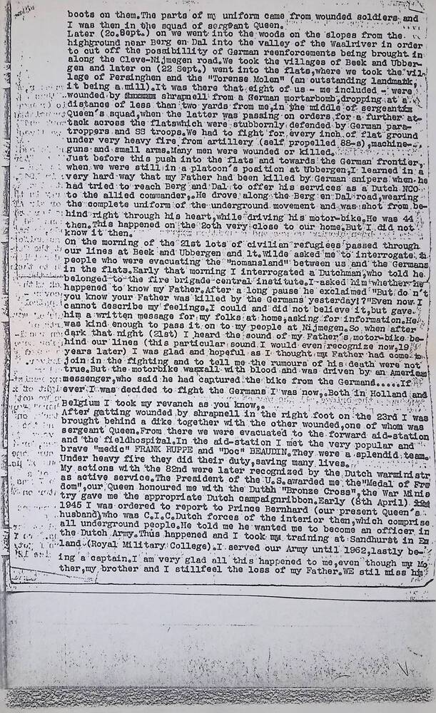 Afschrift, uittreksel van de brief aan M. Sgt, James...