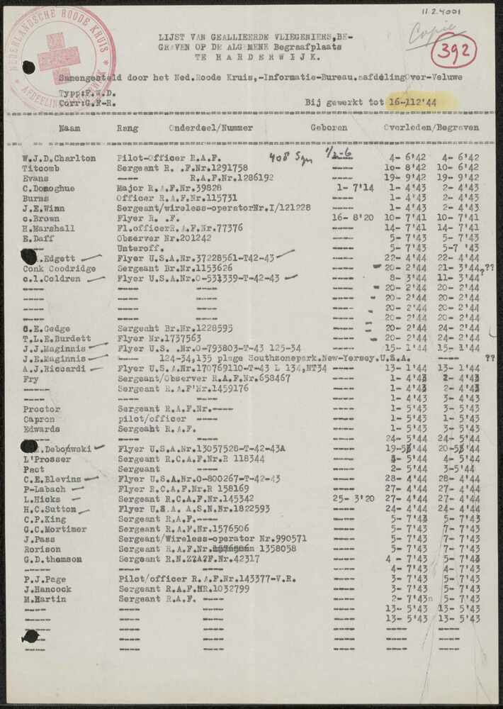 Lijst van het Nederlandse Roode Kruis, 16 december 1...