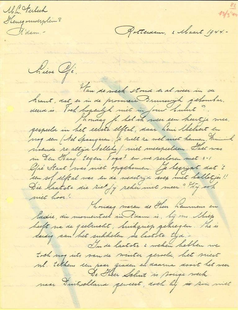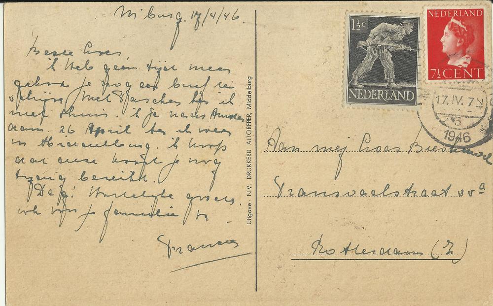 Brief van Mies in Rotterdam aan Gé Verbeek in Watens...