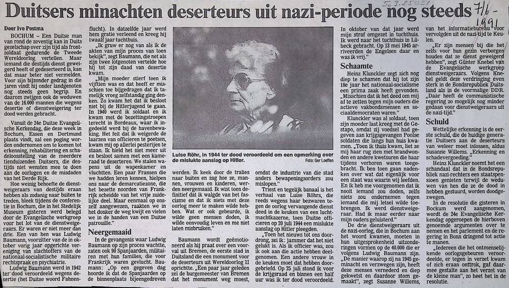 Duitsers minachten deserteurs uit de nazi-periode no...