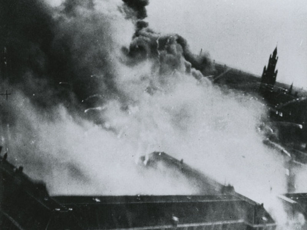 Foto van de Rotte te Rotterdam met verwoeste bebouwing