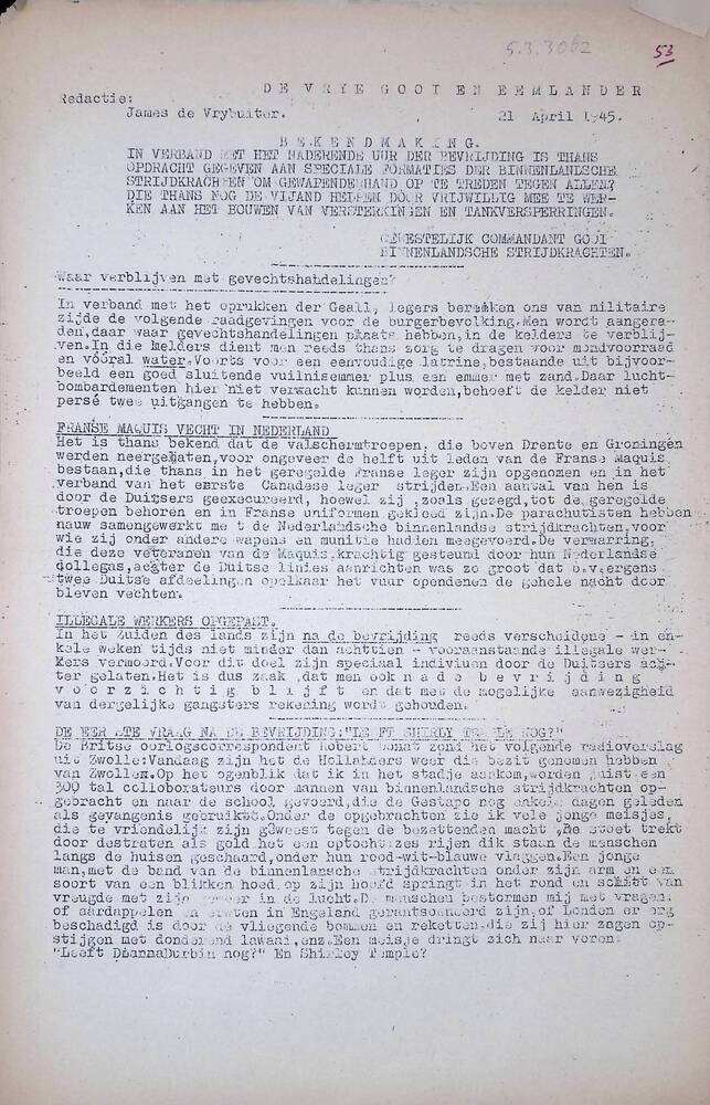 Vrije Gooi - en Eemlander, 21 April 1945