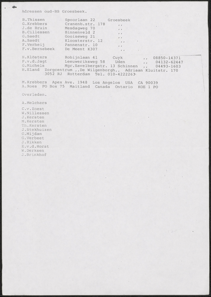Brief H. Klösters over vlag in Groesbeek, + adressen...