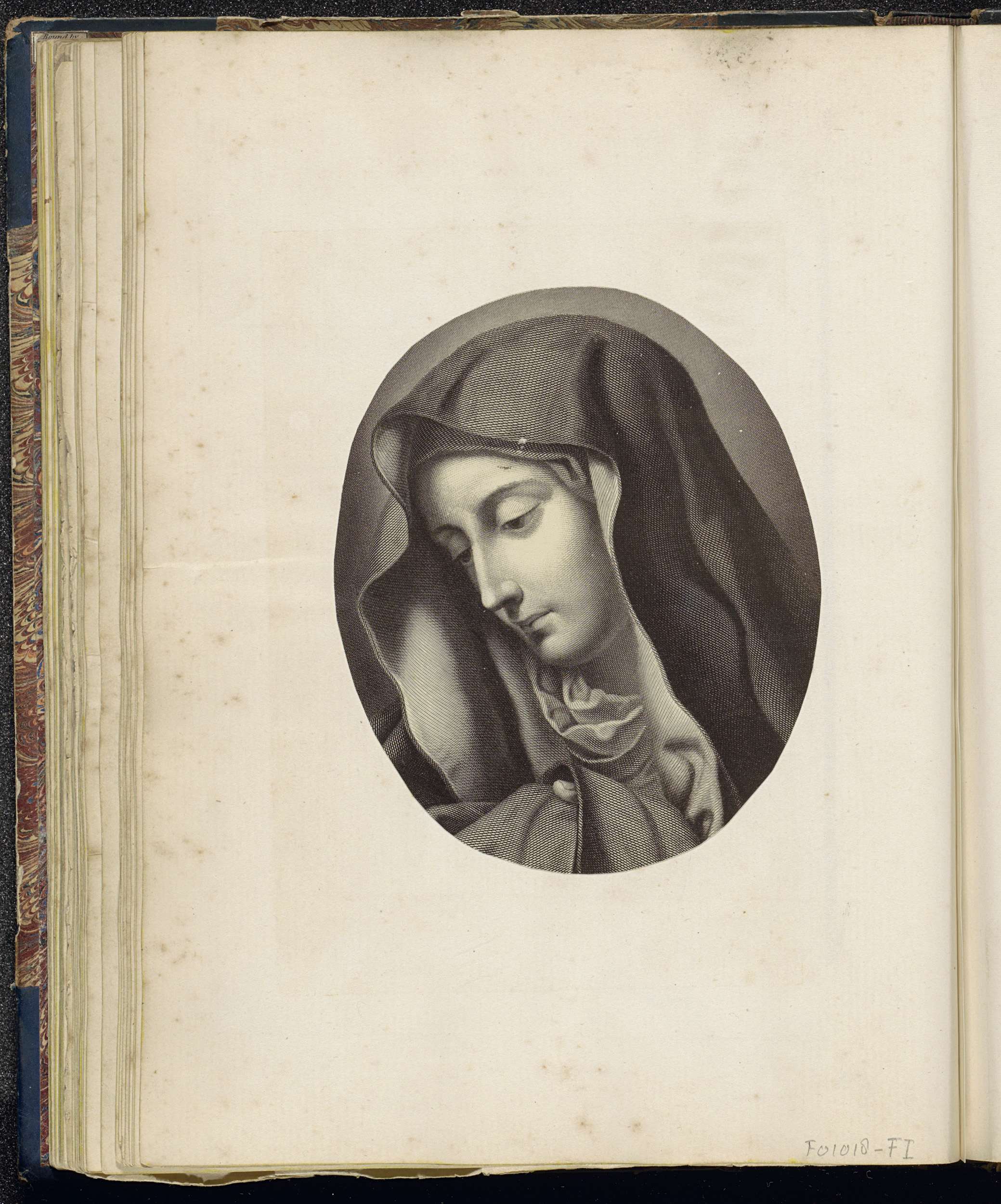 Fotoreproductie van een prent voorstellend Maria Moe...