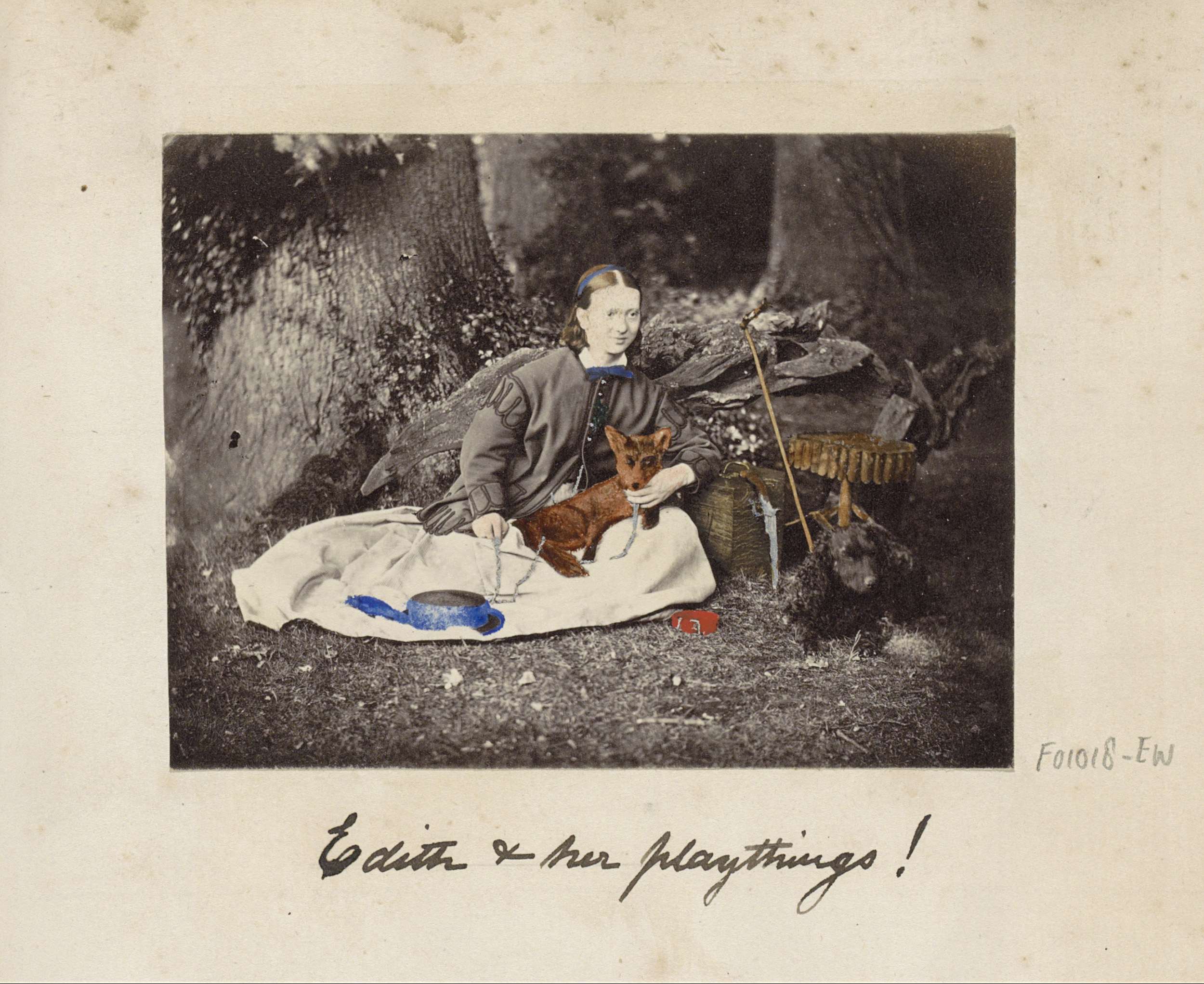 Vrouw genaamd Edith poserend bij bomen met twee hond...