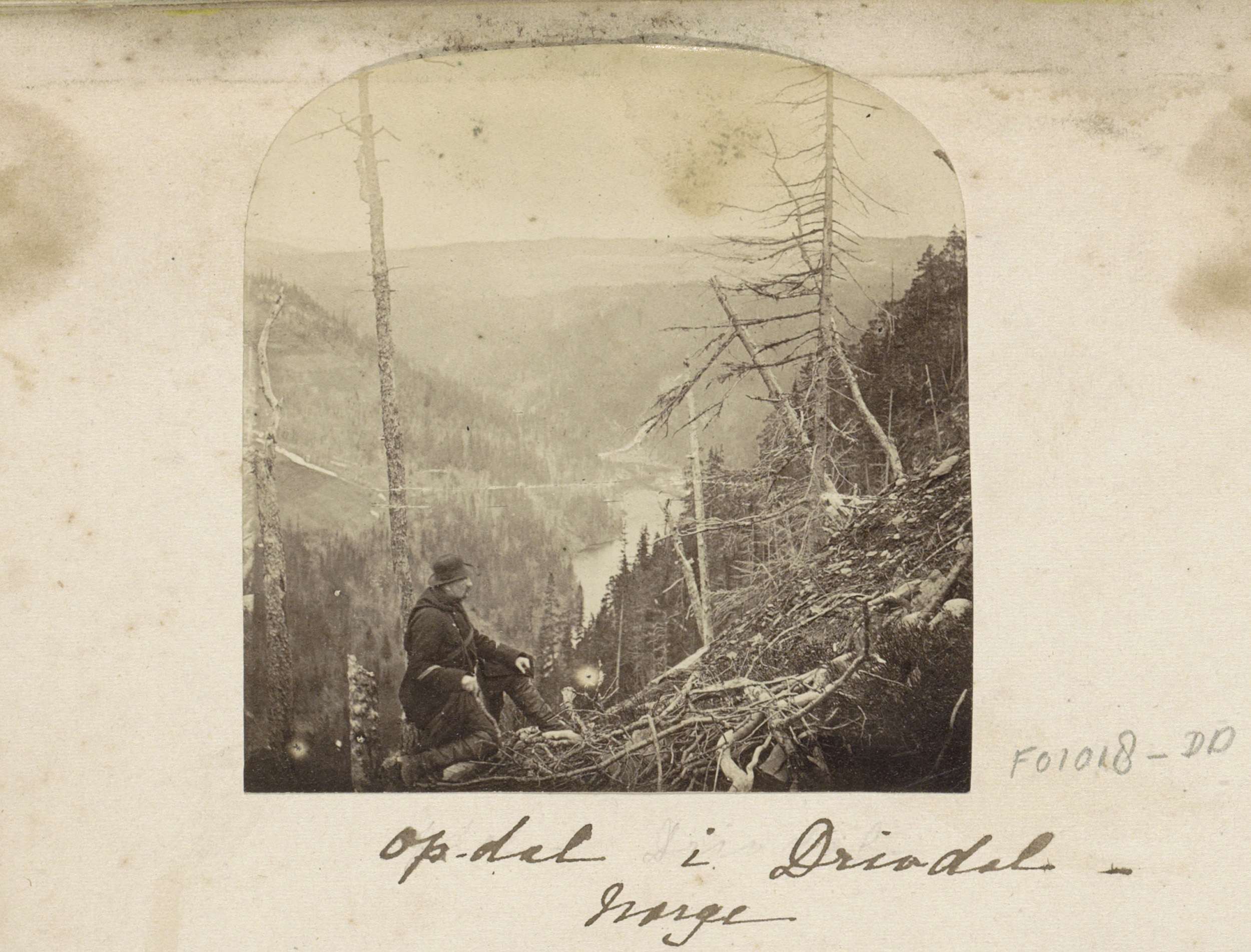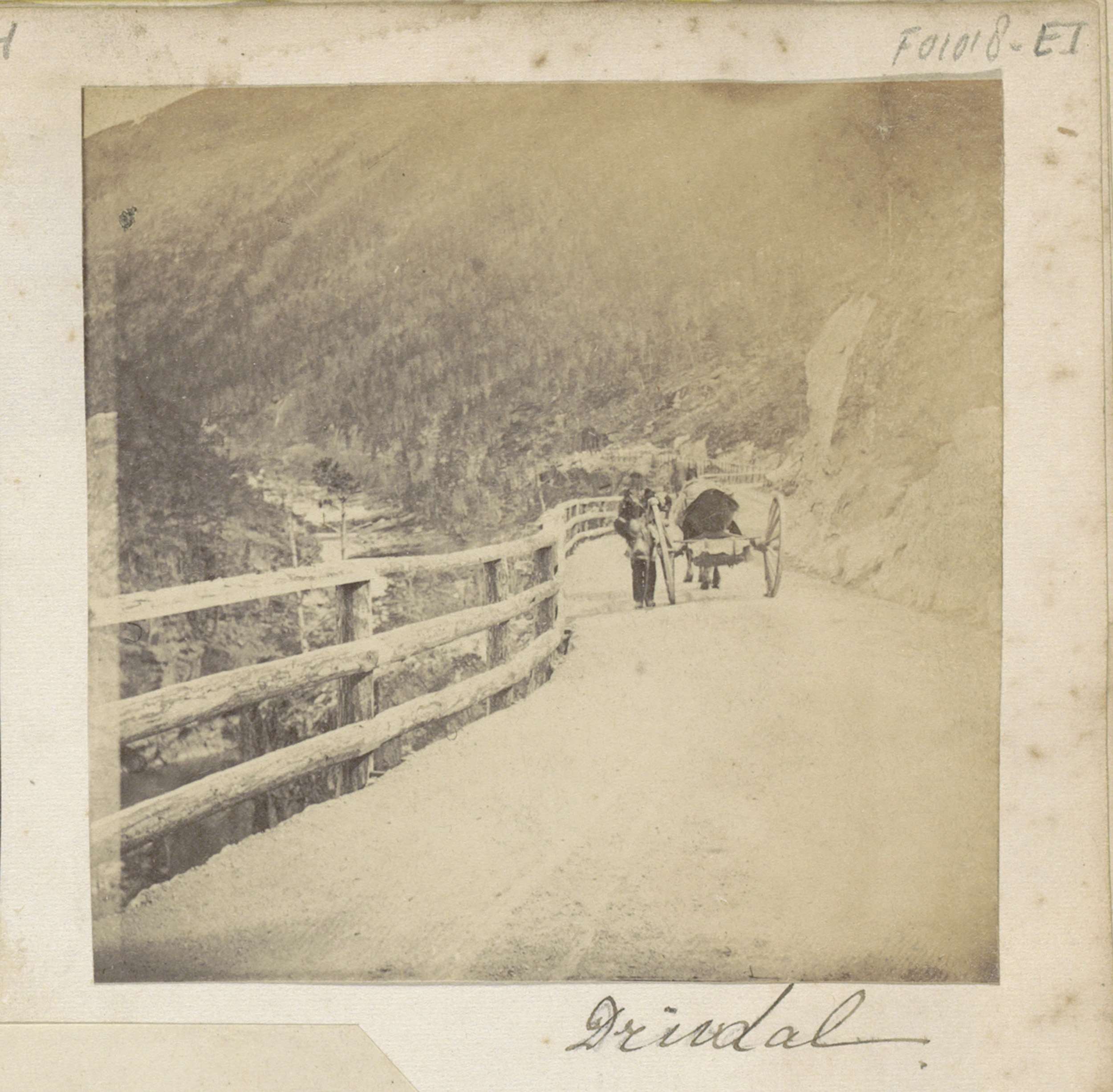 Man met paard en wagen op een weg in Drivdalen