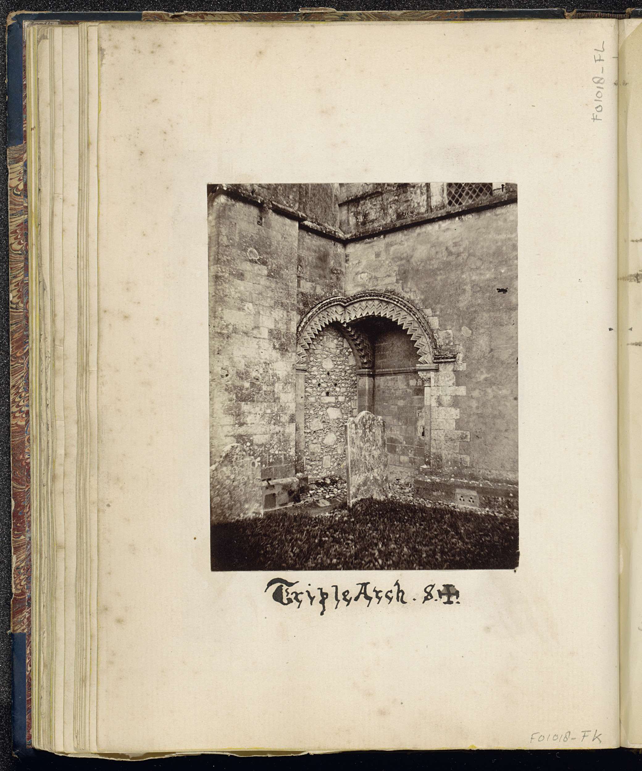 Hoek van (vermoedelijk) een kerk met een drievoudige...