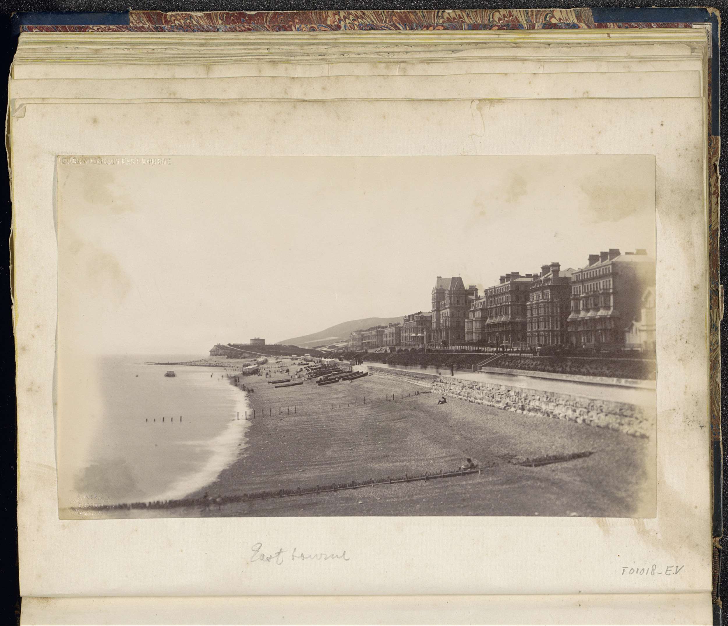 Gezicht op het strand en de boulevard van Eastbourne...