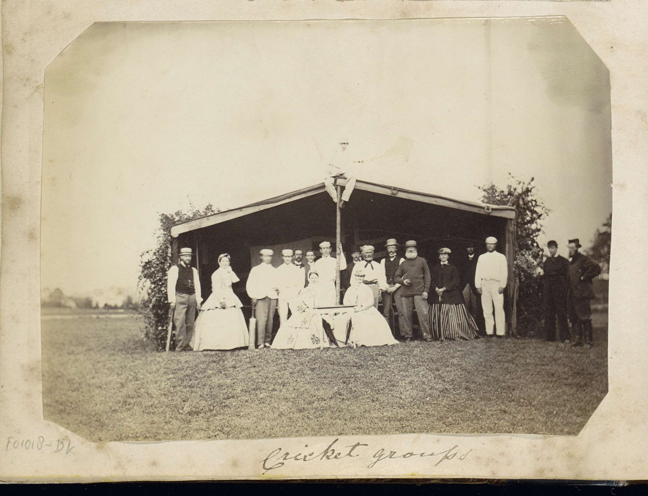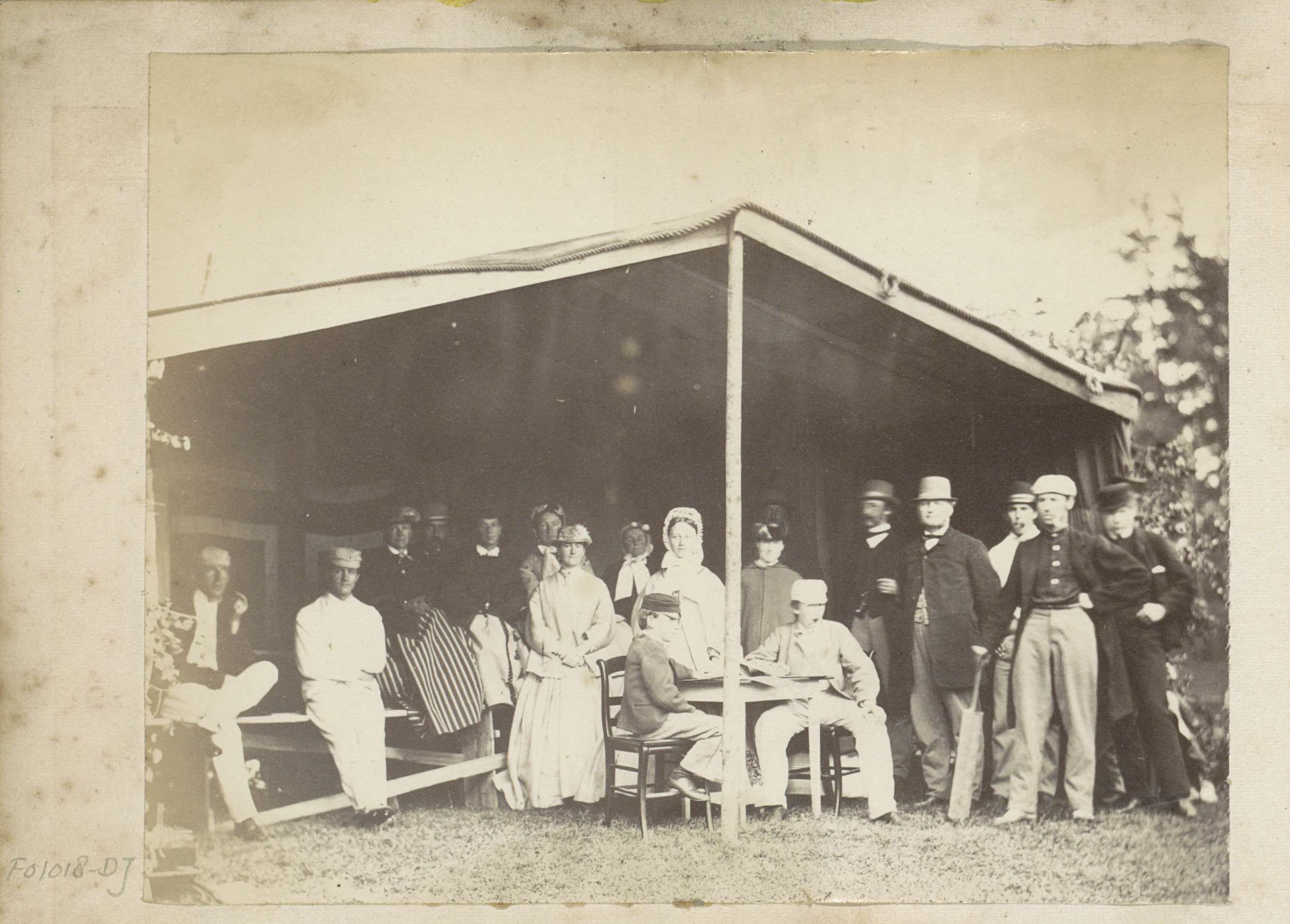 Groepsportret van cricketspelers in een tent in Chri...