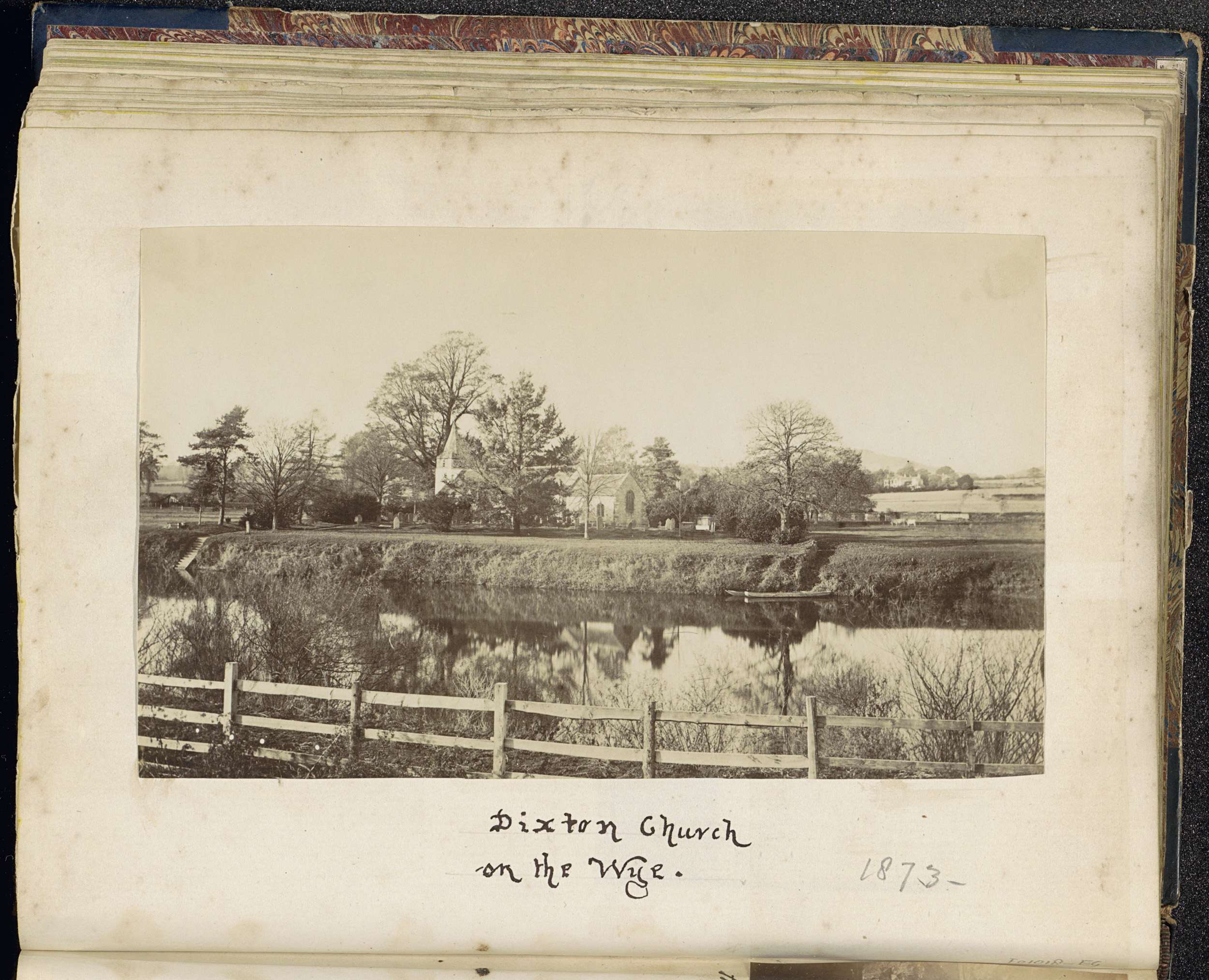 Kerk van Dixton, gezien over de Wye-rivier