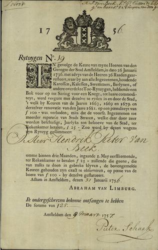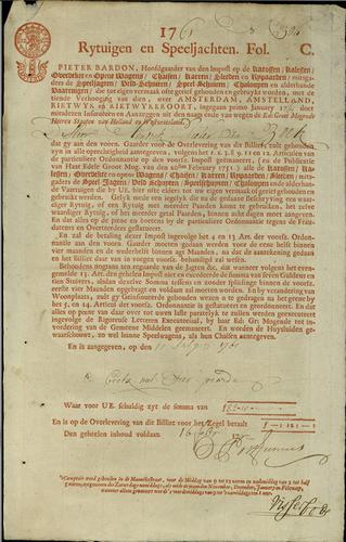 Belastingformulier rijtuigenbelasting, 1757