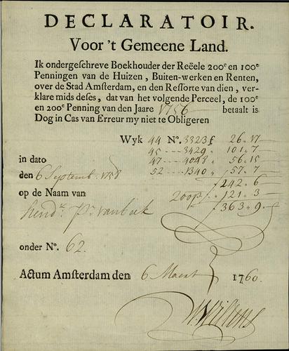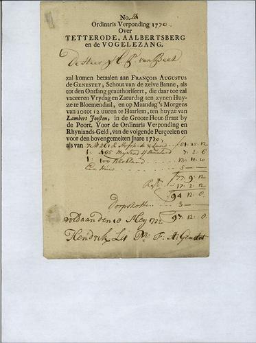 Aangiftebiljet verponding, 1768