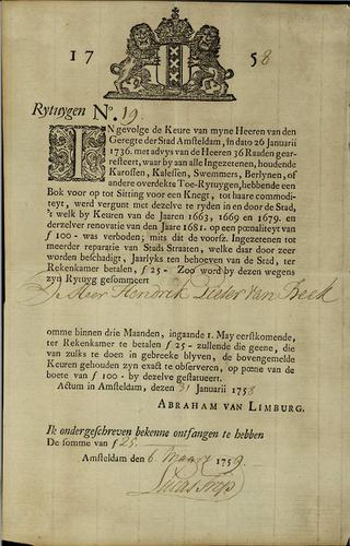 Belastingformulier rijtuigenbelasting, 1758